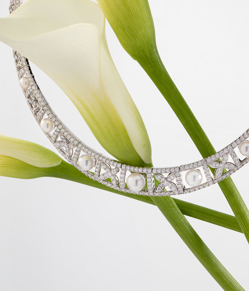 Pearls exude sophistication, enhancing bridal ensembles with timeless allure and elegant craftsmanship. Our designs seamlessly blend classic and contemporary styles, making them the perfect finishing touch for any bride.