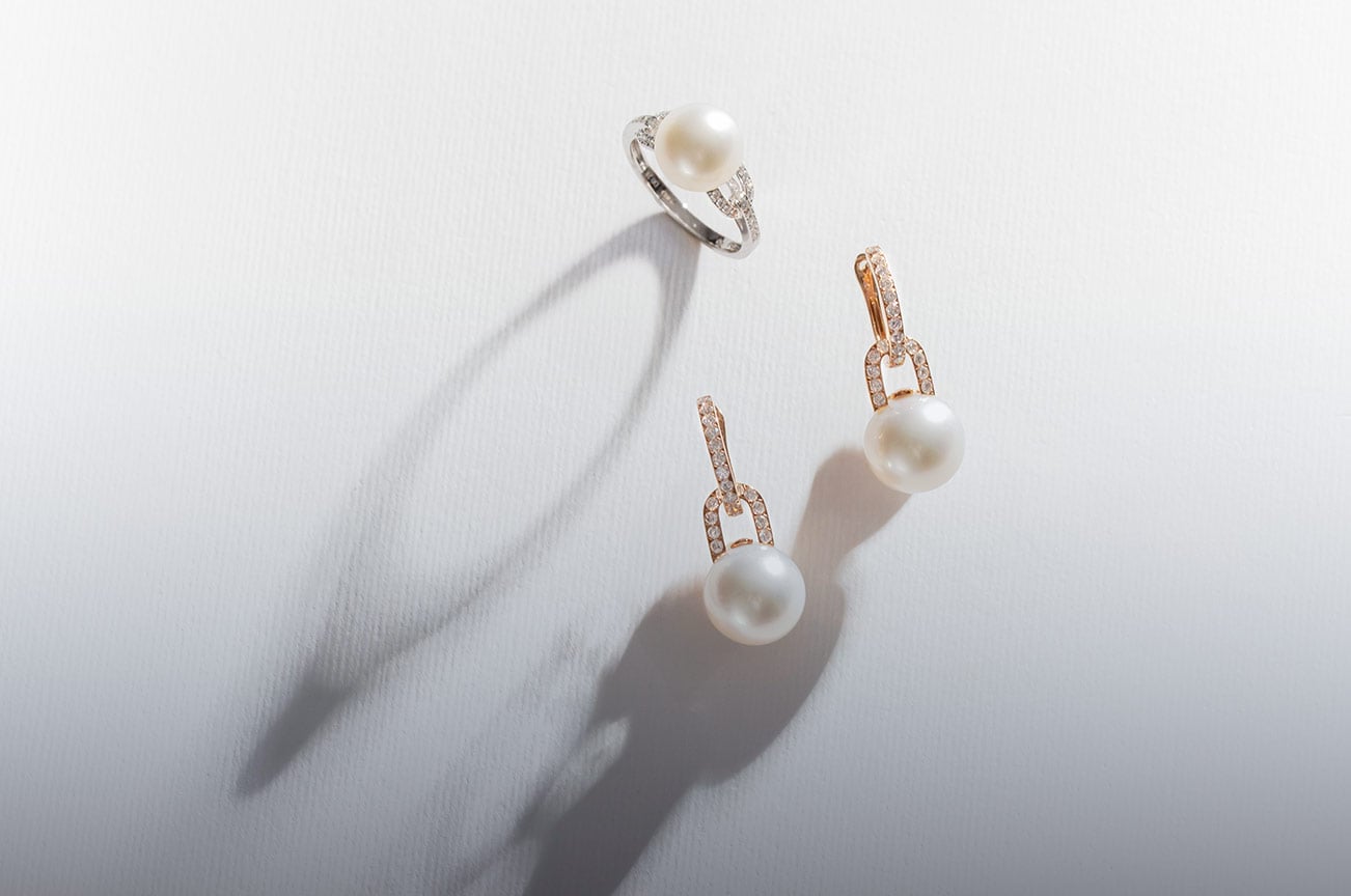 NewJazz 18K Gold Pearl and Diamond Link Ring