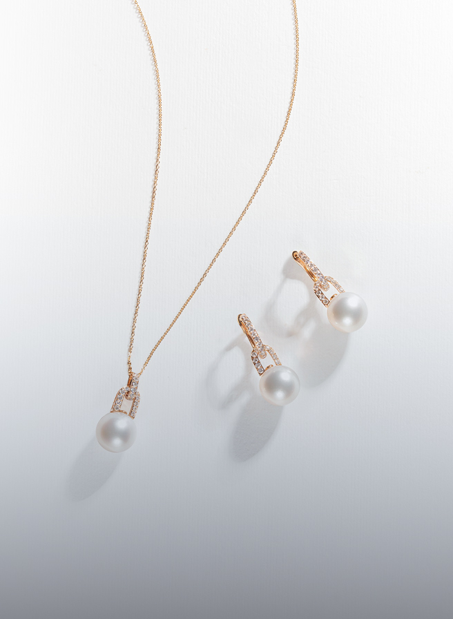 NewJazz 18K Gold Pearl and Diamond Link Pendant