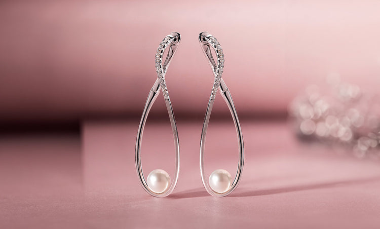 Diamond Classic 18K Gold Akoya Pearl Double Diamond Earrings