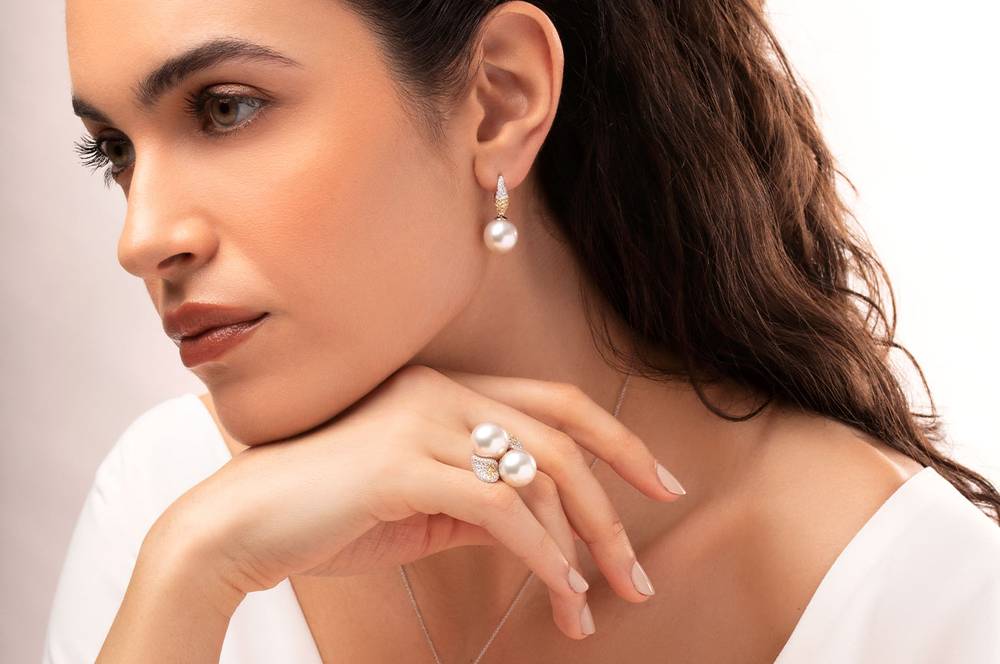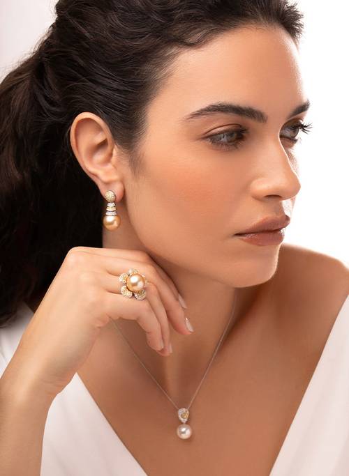 Introducing the Sunrise Collection, a celebration of nature's splendour. This collection features delicate motifs of butterflies and flowers, adorned with a harmonious blend of yellow and white diamonds, create a mesmerizing two-tone effect, evoking the ethereal glow of sunrise. Completing this enchanting effect are the finest white Australian and Indonesian Golden South Sea pearls with a soft, luminous lustre, symbolizing the promise of new beginnings.