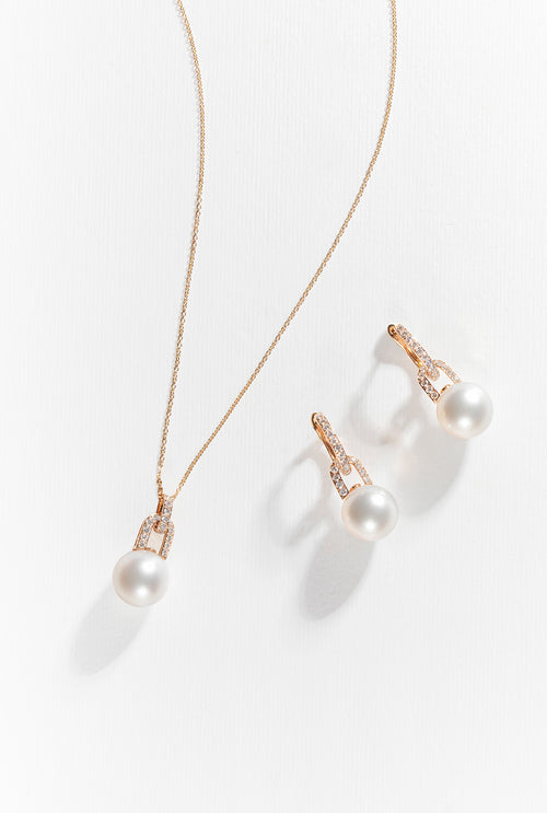 Jazz 18K Gold Pearl and Diamond Link Earrings