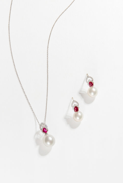 Ophelia 18K Gold South Sea Pearl Oval Cut Ruby Diamond Earrings