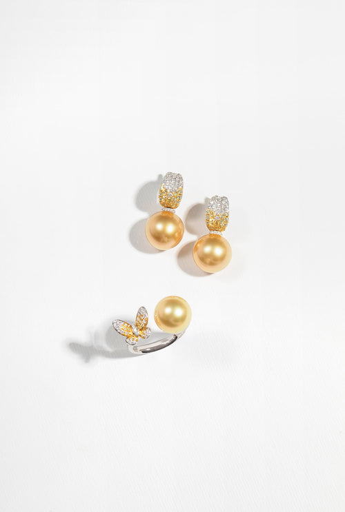 Sunrise 18K Gold South Sea Pearl Butterfly Diamond Ring