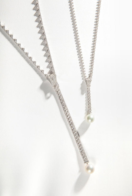 Zyyp 18K Gold South Sea Pearl and Diamond Zip Necklace