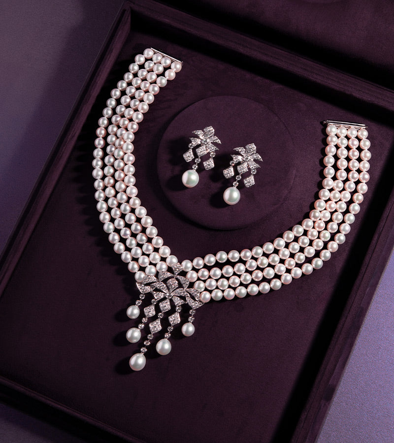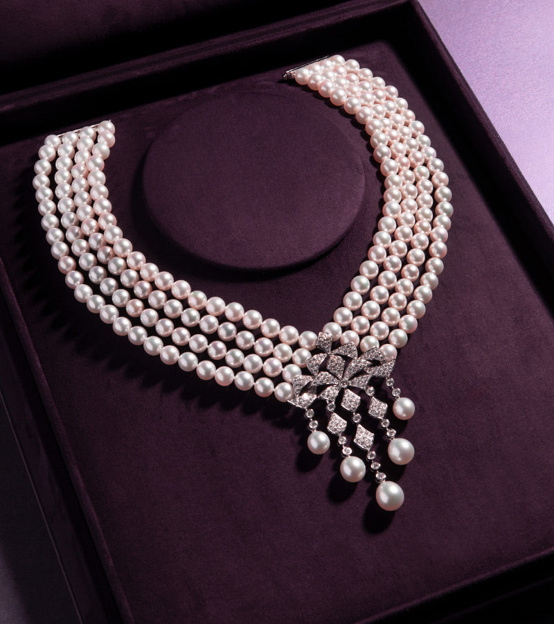 rows of Akoya pearls