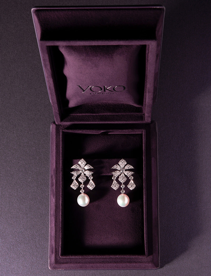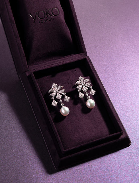 Crafted in refined 18K white gold, the Henley earrings feature a breathtaking 12–13mm Australian South Sea pearl surrounded by delicate diamonds. Designed to echo the elegance of the choker, they fuse classic charm with a bold, contemporary silhouette. A radiant pairing that elevates any ensemble with effortless sophistication.