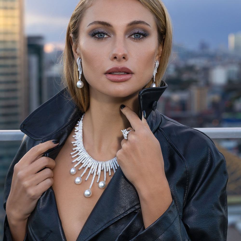 The Lumina High Jewellery Set is designed with versatility in mind. The removable pearls on the necklace and the adaptable design of each piece allow for a variety of styling options, making it perfect for any occasion.